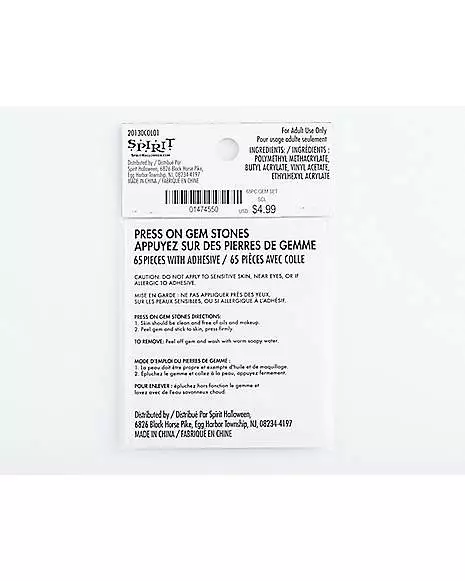 Sparkle and shine with this 65-piece adhesive gem stone set! Apply these stunning gems to clean, dry skin for a completely customizable glam look. Keep them all to yourself or share them with your friends for a dazzling day to remember!