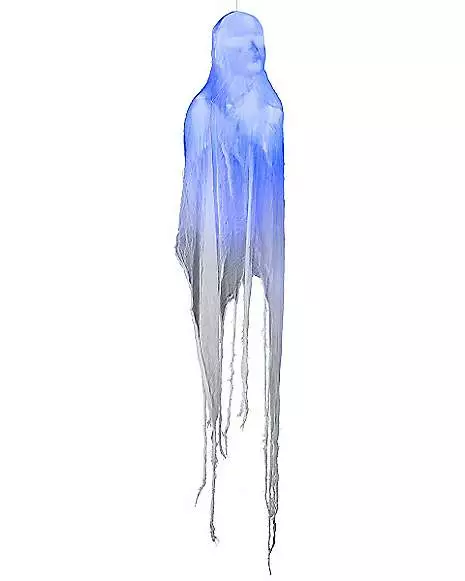Be sure to catch some of your guests by surprise when you decorate using this Hanging Phantom Ghost decoration. This white garbed ghost features a blue illumination that will spook any passer-by.