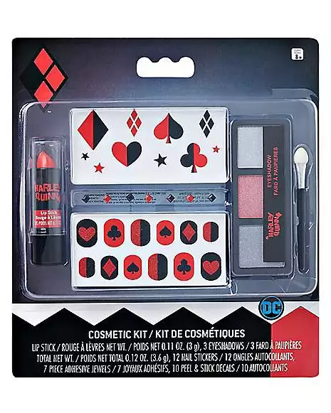 Look just like Harley Quinn with this officially licensed makeup kit! This makeup kit includes Harley’s signature red lipstick, adhesive red and black jewels, and more!