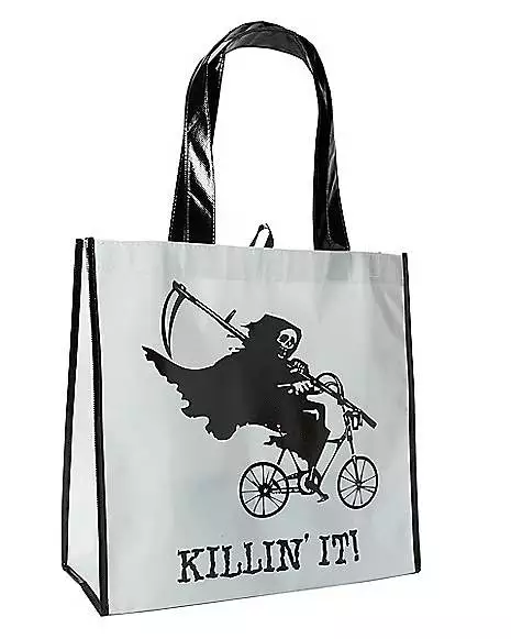 Reap some sweet rewards this Halloween by stashing your trick or treat sweets in this Killin’ It tote. Slay it this Halloween!