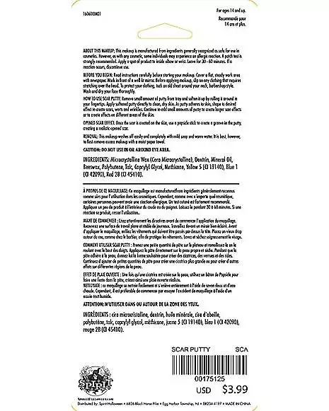 Theatrical quality scar putty lets you create a unique look. Gangster, monster, ghoul, contender or tough guy – you decide!