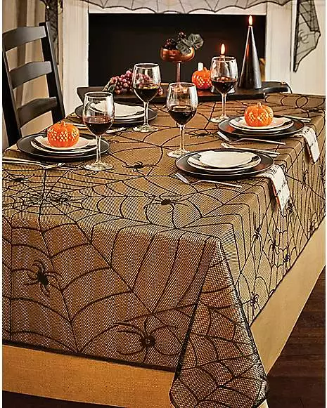 This mesh spider web tablecloth is the perfect way to decorate for your Halloween party! Add a creepy touch to your dinner table and celebrate the holiday spirit!